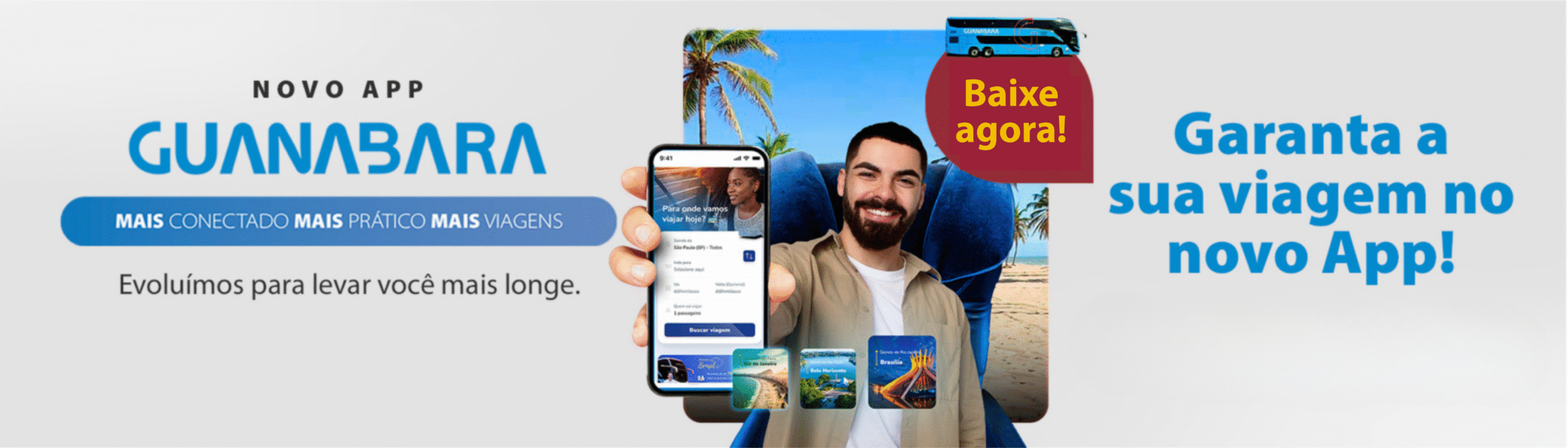 O novo app do Viaje Guanabara foram criados para tornar sua experiência de viagem mais simples, rápida e conectada. Com tecnologia avançada e um design moderno, agora você pode planejar toda a sua jornada com mais conforto e agilidade, tudo na palma da sua mão.