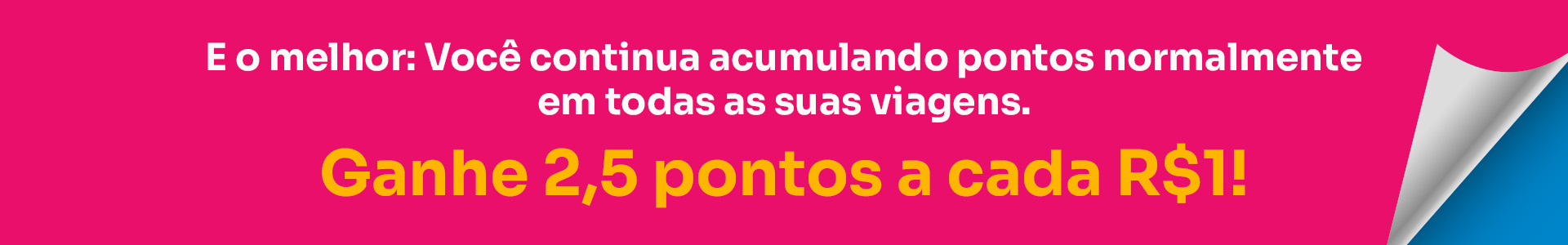 Exemplo: Se comprar uma passagem de R$100, você ganha 250 pontos.